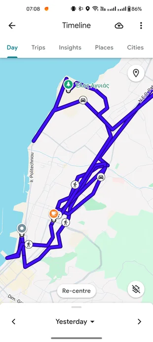 Odtud už jsme se vydali do Patrasu. Byl to cíl z jednoho prostého důvodu, protože podle European Coffee Tripu jsou tu tři kavárny. Sice ne blízko u sebe, ale v jednom městě. Pro představu, na celém Peloponésu je jich 6.Vybrali jsme jednu strategicky umístěnou a vydali se na cestu. Patras je město podobné všem ostatním v Řecku. Rozdíl, který pro nás byl poměrně zásadní je - je to poměrně velké město. Což znamenalo velmi frekventovanou magistrálu s poddimenzovaným chodníkem, kudy se nám nechtělo jít. Tak jsme šli bočními uličkami. Ale ty byly dlouhé, pro Barču je to docela terén a s větším městem to bylo dál, víckrát jsme potkaly stavbu, odpadky atd. Pokud se chcete projít, doporučil bych zvolit jiná města.
